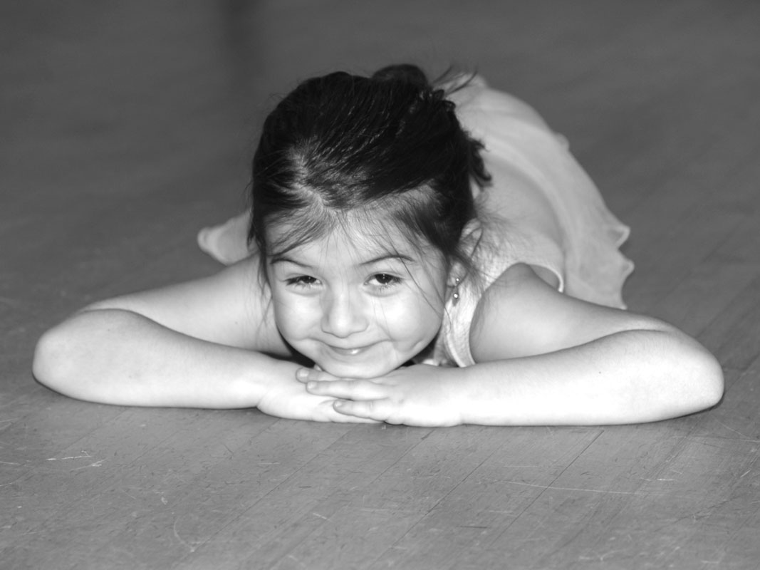 Children in this program are gently introduced to the classroom environment. Repetition, so important at this level, is a key element to the structure of the classes. Concepts taught include stretching the feet, balancing on one leg, weight transfers from one foot to another, jumping, skipping, simple arm movements and moving across the floor using patterns. Many types of characterizations are used to develop both movement quality and imagination. Students also start learning the concepts of counting the music and opposites.